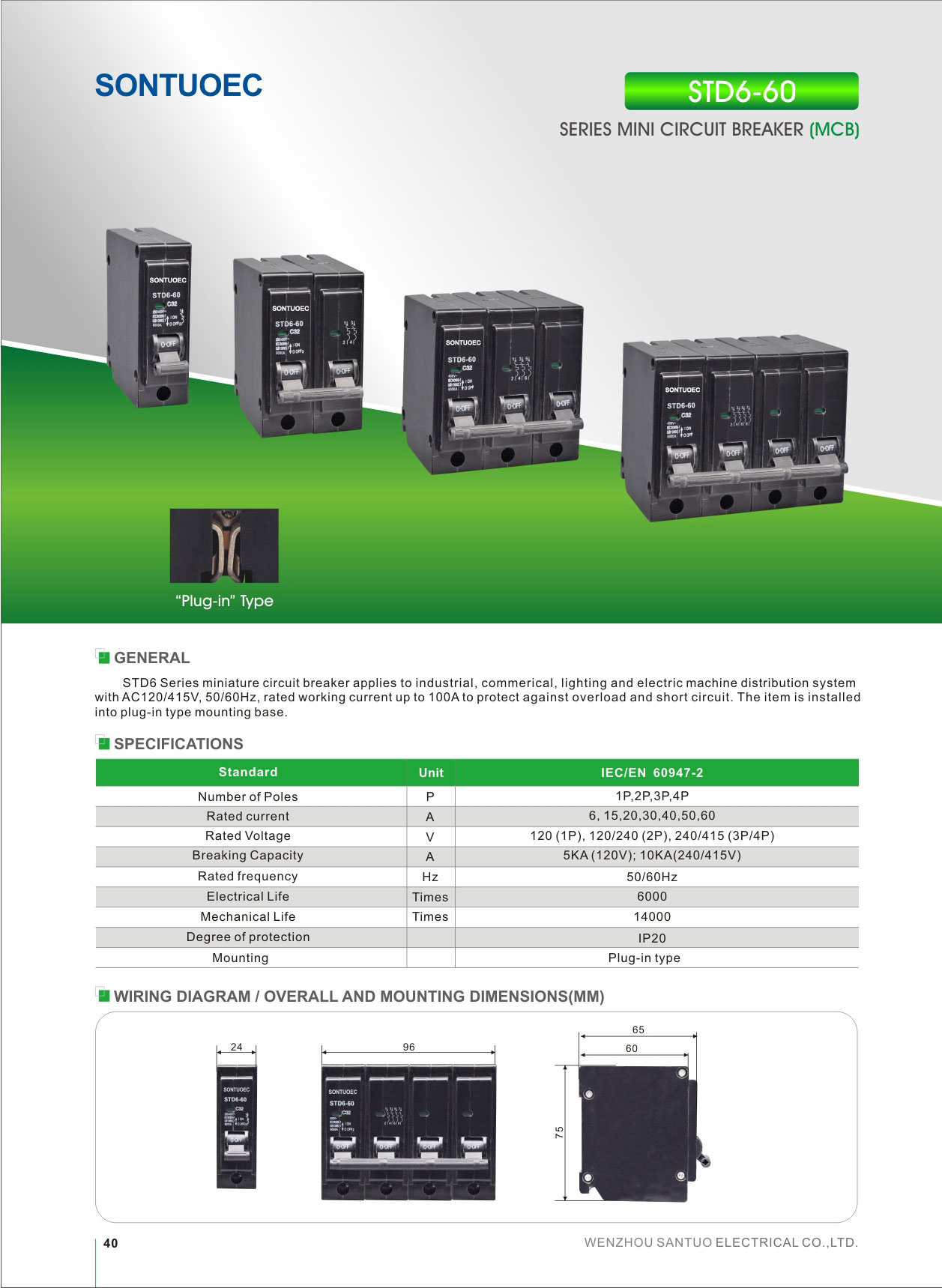 SONTUOEC הוא אחד הספקים/יצרנים הסיניים המתמחים בייצור של Hot Sale Bh Safety Mini Circuit Breaker MCB מחיר 100A והוא מיועד להגנה מפני עומס יתר וקצר חשמלי המשמש במערכת הפצה למגורים ותעשייתיים. זרם נקוב מרבי עד 63A