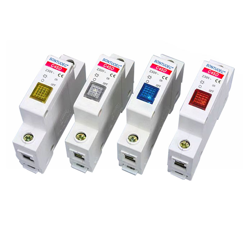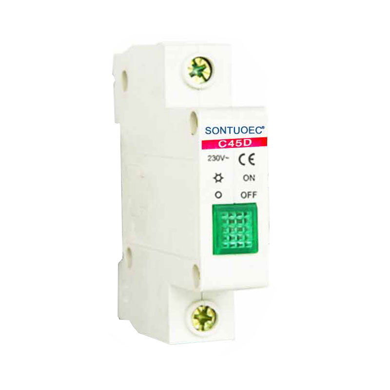 סדרת C45D מודולרית המציינת אור חל על מעגל עם מתח מדורג 230 וולט ותדר 50/60 הרץ לצורך אינדיקציה ואיתות חזותיים.